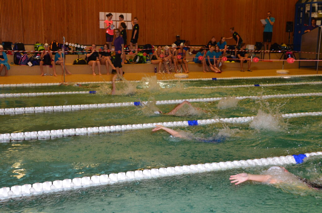Unsere jüngsten Kids – teilweise erst 6 Jahre alt – starteten über 4x25m: Delfin-Beinschlag, Rücken, Brust und Kraul. Alle Schwimmer/innen der Jahrgängen 2008 und älter legten die 4x50m Lagen zurück. Die fünf Zeitschnellsten qualifizierten sich für den 100m Lagen-Finallauf.
