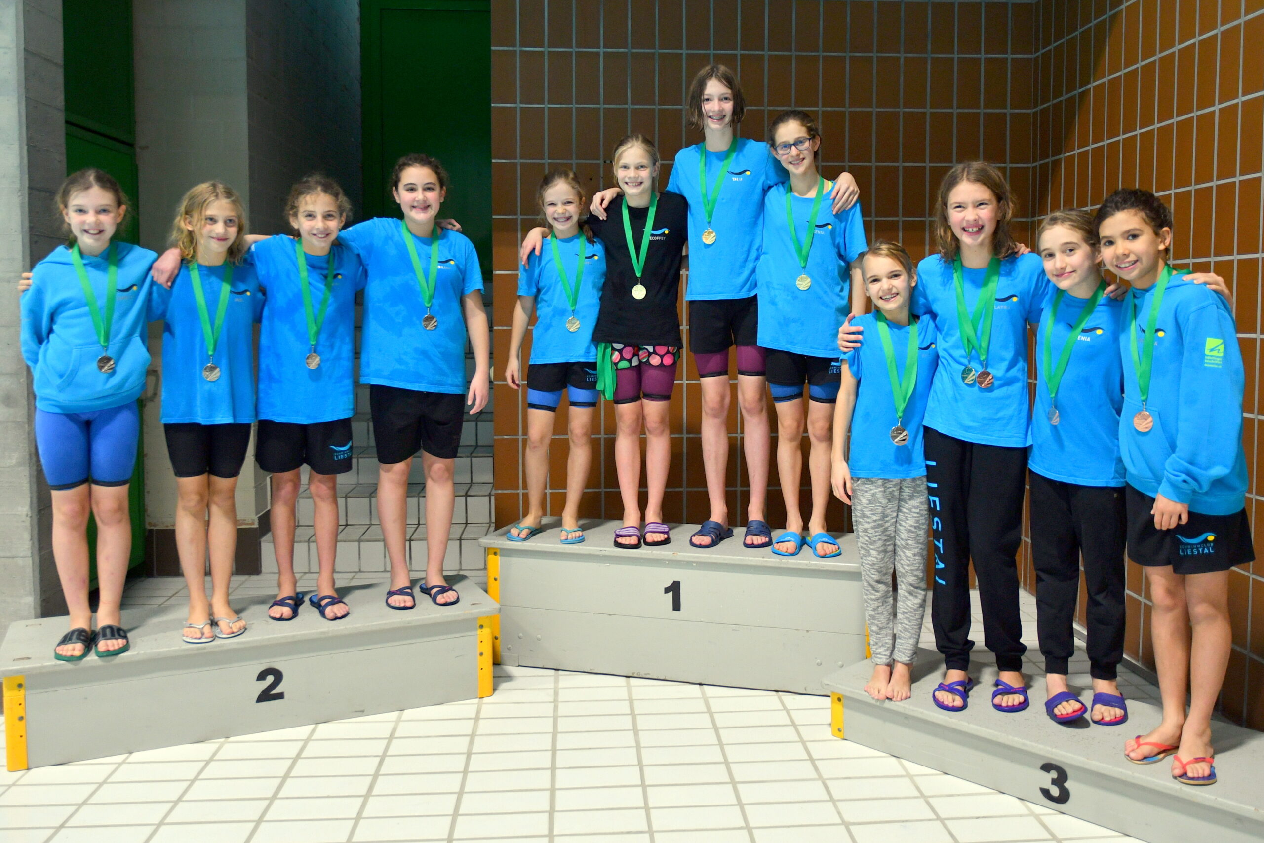 In der Staffelkategorie 13 Jahre und jünger war der Liestaler Nachwuchs unschlagbar. Sowohl die Jungs als auch die Mädchen gewannen die Wertung über 4x50m Lagen mit riesigem Vorsprung. Bei den Mädchen schafften alle 3 Liestaler Teams den Sprung auf das Podest. Bravo Girls!