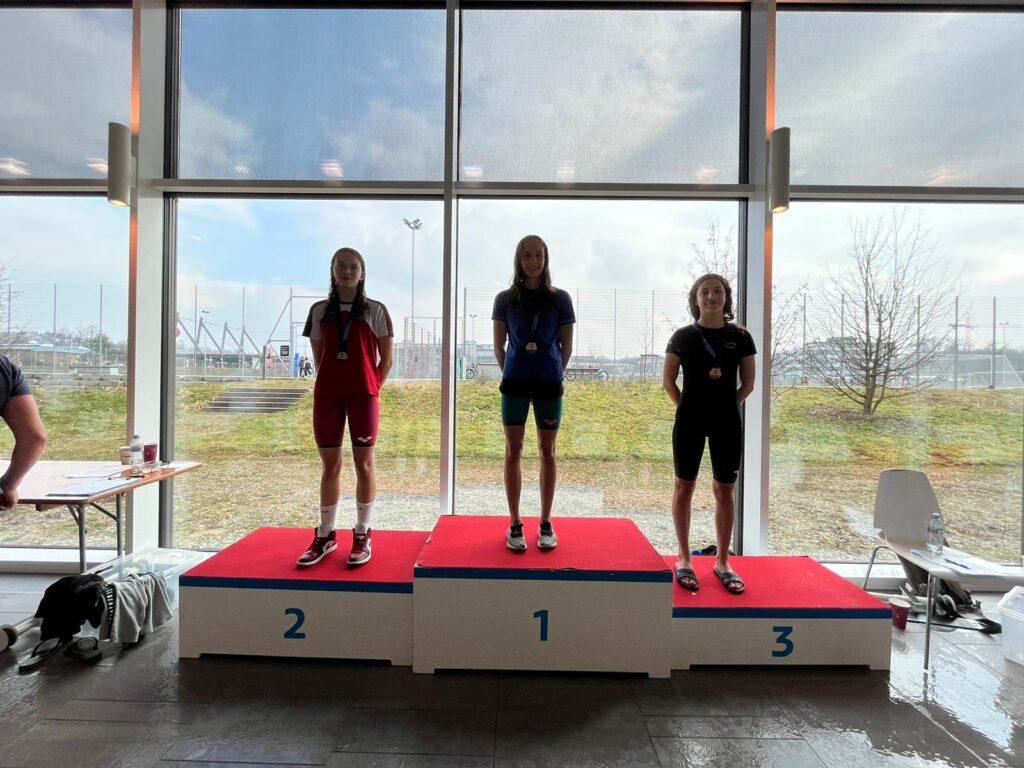 Unser erfolgreichster Athlet mit drei 2. und einem 3. Platz war Ryan Balmer (Jg 2010), der sich damit auch sogleich die Teilnahme am Schweizer Nachwuchs-Cup Final anfangs April gesichert hat. Ebenfalls eine Medaille gewann Giordana Graf (Jg 2008). Nach einer 6-monatigen Durststrecke über ihre Lieblingsdistanz 100m Brust erreichte sie in 1.21.65 den dritten Platz. Die 4×50 m Freistilstaffel der Mädchen Kategorie Youth (14- und 15-jährige) gewann vor dem Schwimmclub Bern und der Startgemeinschaft Berner Oberland in 1:56.76 den ersten Platz. Camille Schicktanz (Jhg 09), Layra Balmer (Jhg 09), Giordana und Rebekka Jäger (Jhg 09) blieben alle unter 30 Sekunden über 50 m Freistil, wobei Layra und Rebekka sogar die 29 Sekunden-Grenze geknackt haben.