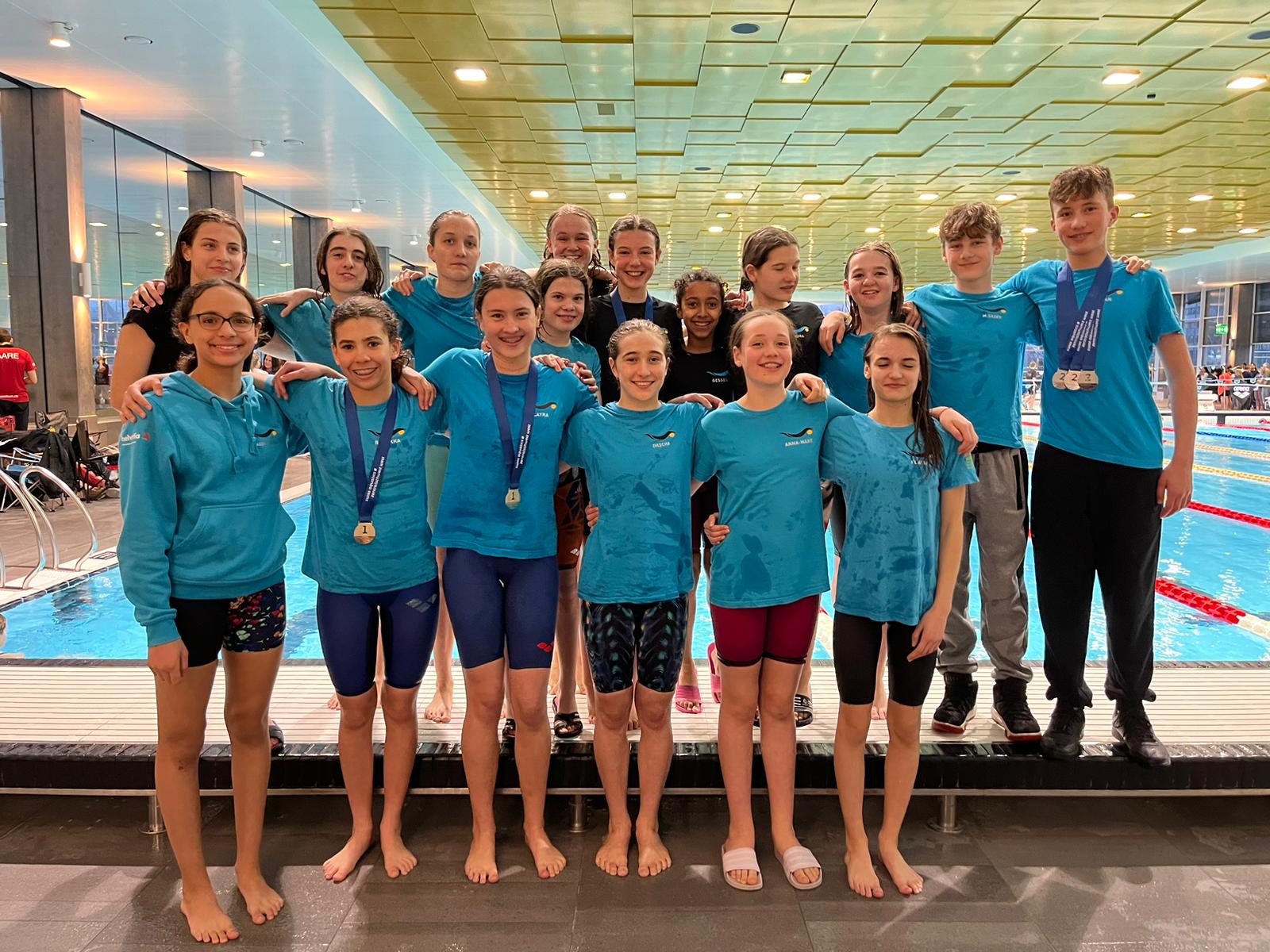Zu Guter Letzt – wie immer – die Coach-Sicht der Dinge. Diese beschränkt sich in meinem Fall nicht nur auf die Zeiten, sondern auch auf das Verhalten, sei es Teamgeist, Fokus, Auftreten am Wettkampf oder mentale Stärke. Ich hatte den Athletinnen und Athleten die Tage vor dem Wettkampf die Energiebereitstellung im Körper erklärt, was Laktat ist und was es bewirkt, nämlich eine Ermüdung. Dieses angesammelte Laktat gilt es nach jedem Rennen zu beseitigen, damit man einen ganzen Tag lang voll performen kann. Die Lösung zu diesem Problem ist: Ausschwimmen! Nach jedem Rennen müssen die Sportler und Sportlerinnen mind. 10min, besser 15-20 min ihre Bahnen in einem regelmässigen lockeren Tempo schwimmen.  Für unsere Schwimmer/innen sind das 500-1000 m. Nicht im Becken stehen und miteinander das letzte Rennen diskutieren, nicht am Rand ziehen, nicht spielen: schwimmen! Diese Anweisung von mir wurde einwandfrei umgesetzt! Es hat mich ungemein gefreut, dass die Schwimmer und Schwimmerinnen mit Fokus und dem Willen zu performen ihre Bahnen gezogen haben. Sie sind mit Bestzeiten bis zum Schluss des Tages belohnt worden. Das letzte Einzelrennen war 100m Freistil und alle bis auf 2 Schwimmerinnen, sind Bestzeit geschwommen und diese 2 weniger als 0.5 % über ihrem persönlichen Rekord.